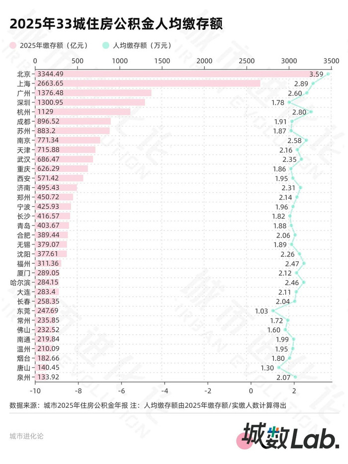 近段时间,有关“沉睡”的10万亿元公积金讨论热烈。眼下,全国主要城市2025年住房公积金年报相继出炉。我们统计了包括29座GDP万亿城市、15座副省级城市在内的共33座城市年报核心数据。